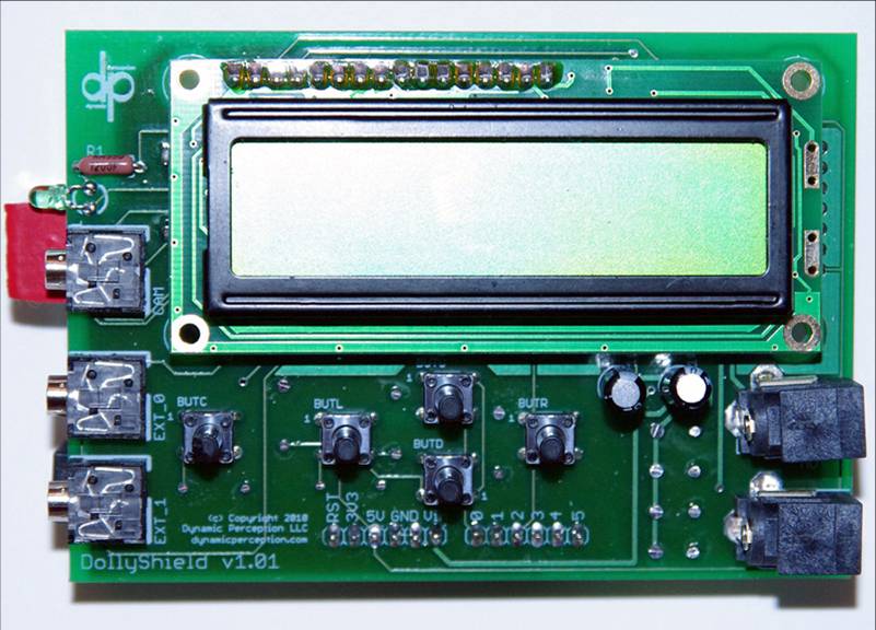 To help you on your way, there's the DollyShield, which I spotted on the Arduino Shield List. It includes control of two DC motors, shutter remote for the camera, joystick buttons and a LCD. "It is designed to provide an inexpensive and easy-to-use interface for two-axis motion control integrated with a camera."