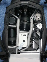 So if you're only into photography, and not DIY and soldering, those are maybe some of the solutions you'd go for. However, if you are able to build one yourself, what is stopping you? Nothing, it seems, judging by the number of home made panorama bots. Here is a Lego Mindstorms competition to build a pano bot with the winners from 2008. Here is a Jason Babcock's second go at a panoramic turntable, using ULN2004A and BX-24 micro-controller.  And here is T. Emrich's system which looks like a very solid setup, and clever control: His early work resulted in a horizontal rotation only solution. Later on, he built the GigaPanBot or Gigapixel Panorama Robot with complete freedom on both axis, seen in the picture below. Maybe most impressive, is how the whole system fits into his camera bag.