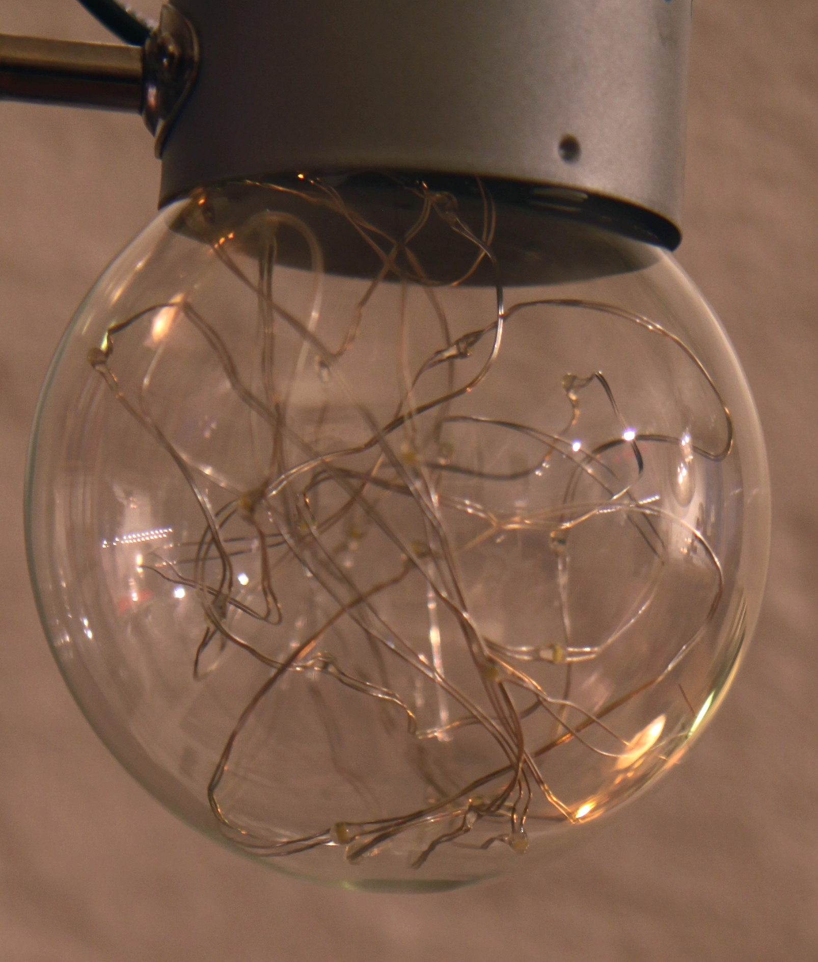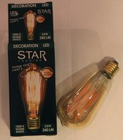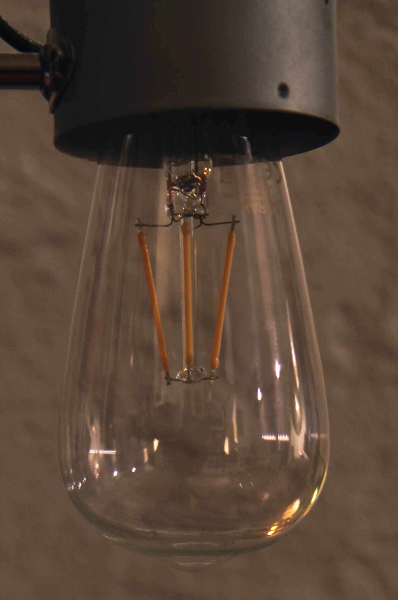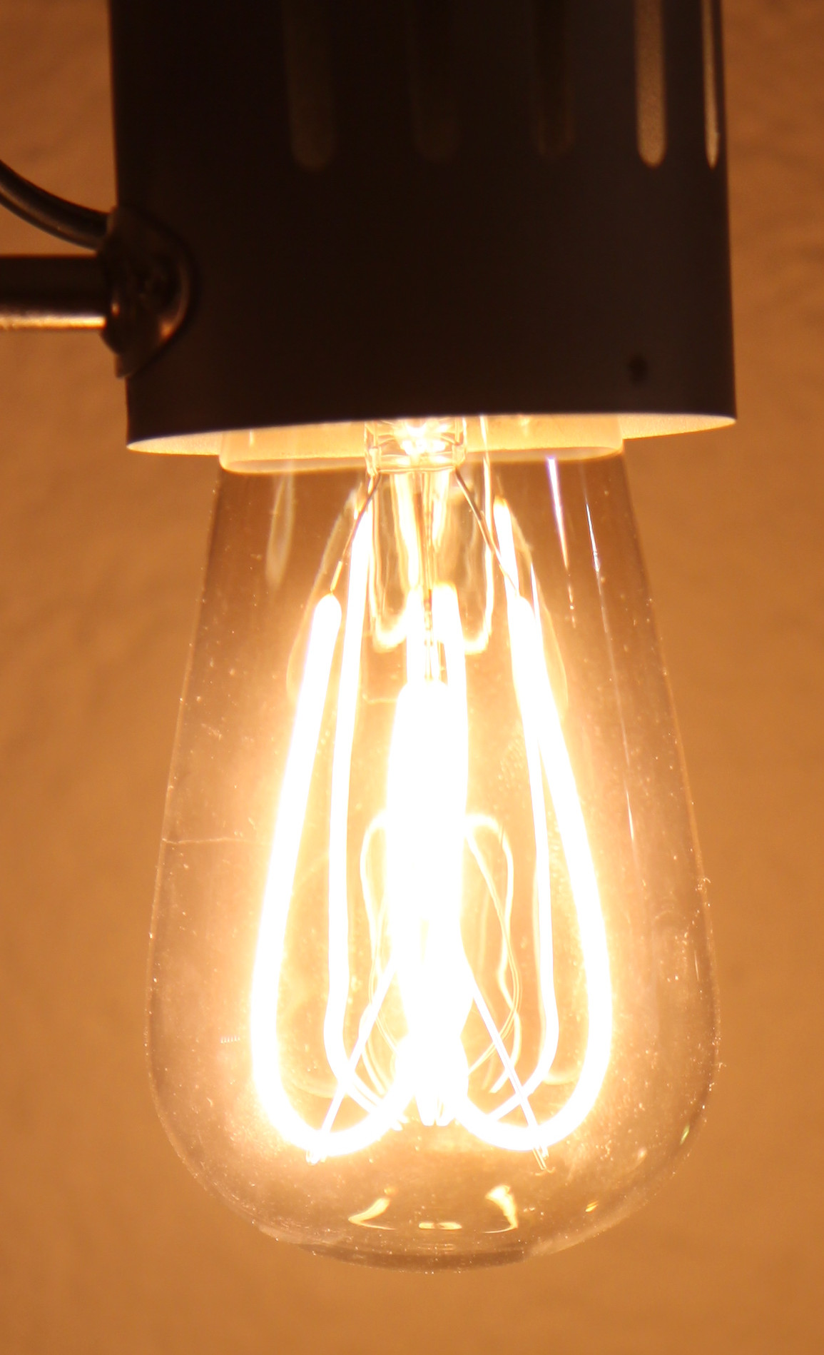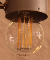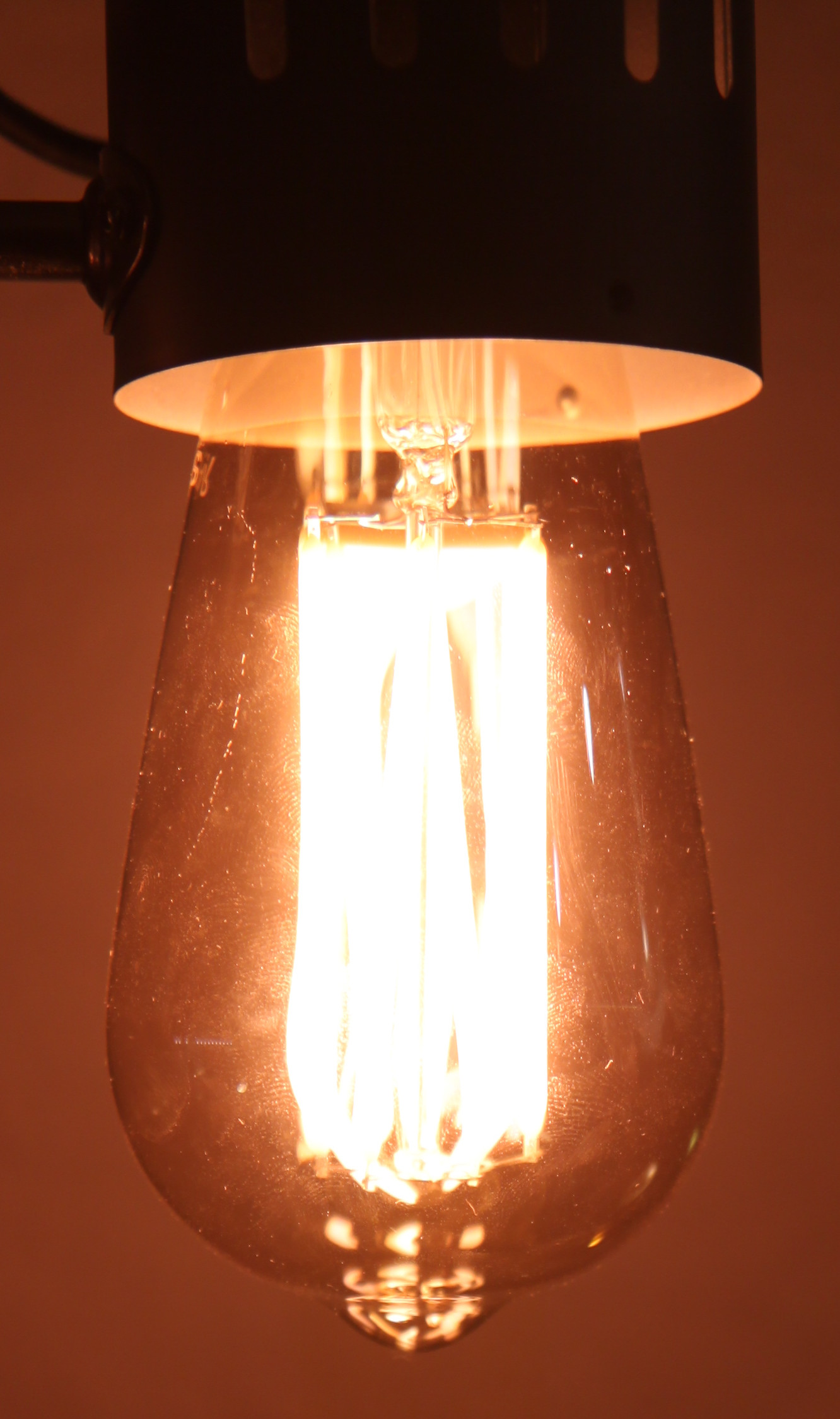In a quest to create a light-arrangement similar to the photo below, I've tried out a number of LED filament light bulbs. They are all European socket E27 220 volt, but with variations on imitations of old style Edison incandescent bulbs, using LED filaments. Some give a normal bright light, while others are warm and dim. But first, some specifications.