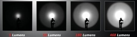 The brightness of a light source is expressed in lumen, or luminous flux, where 1 lumen is equivalent to a single candle, while 100 lumen is 100 candles. However, beyond a few candles, it's difficult to have an intuition about what the numbers mean. Here's a rule of thumb for typical light bulb ratings, including those discussed further down: