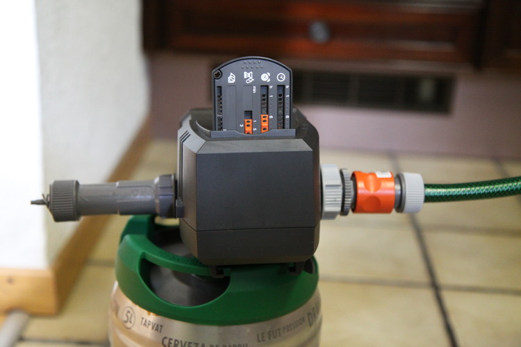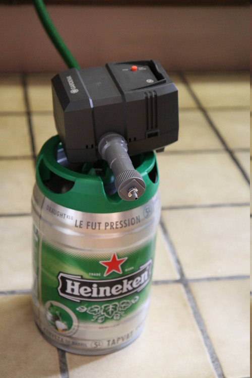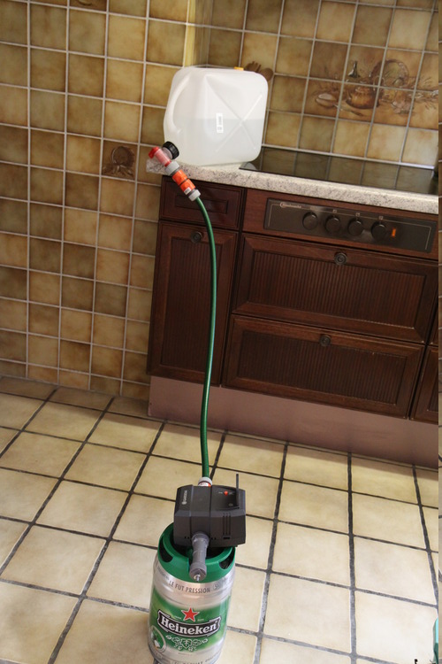 And here, some pictures of our set up. Oh, and the Heineken keg? Turn out it had a useful form which fit the watering unit nicely. Also worth noting is the attachment to the water tank. It was not purpose made, and was leaking on the first try. Some Sugru took care of that.