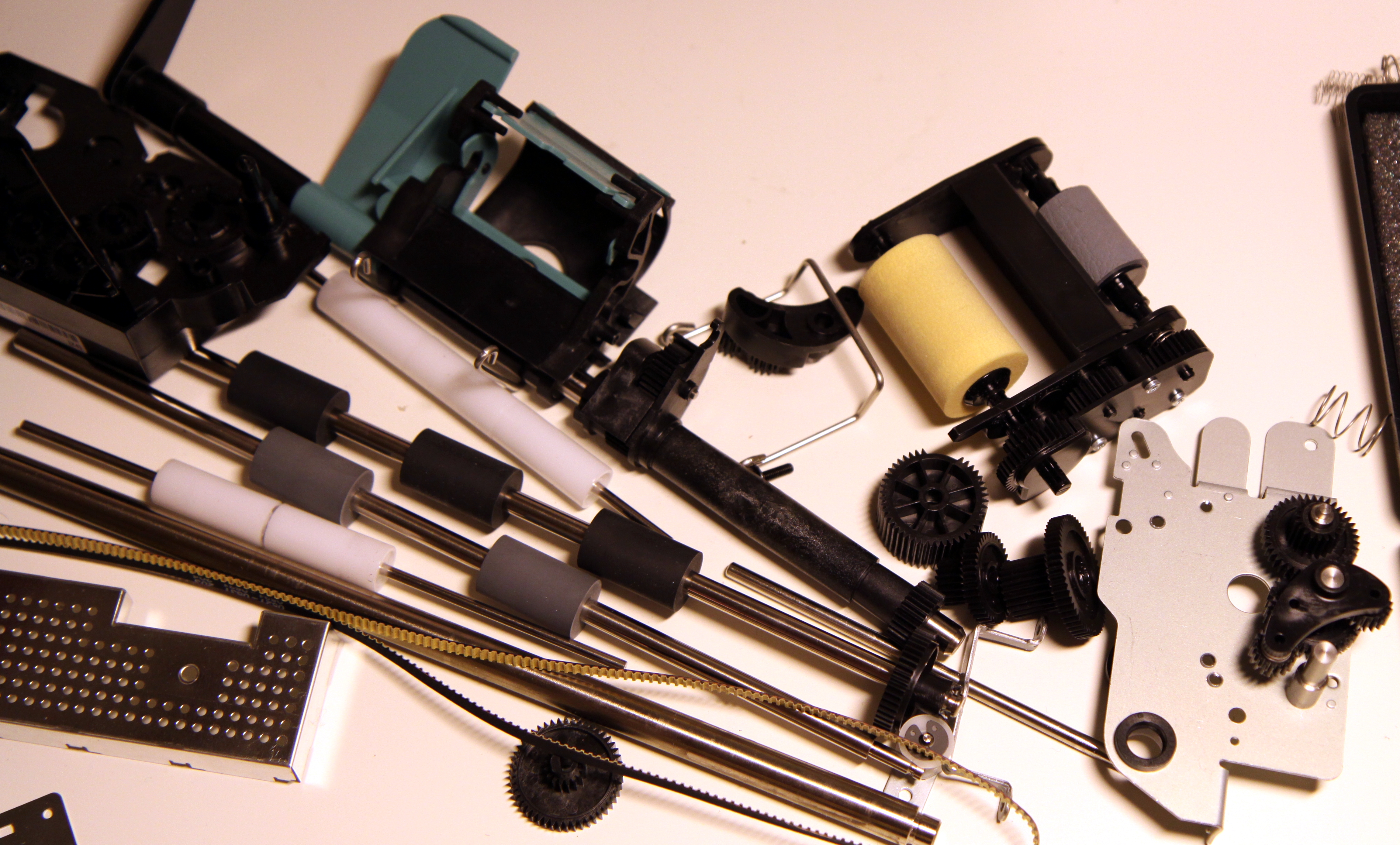 Why throw away things when you can keep them? Or at least get some useful parts!? :-) I recently found an old HP ScanJet 4500C which was about to be thrown away. After I had opened it and unscrewed every single screw, there was just some plastic left to get rid of. And some nice parts left for me.