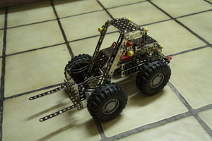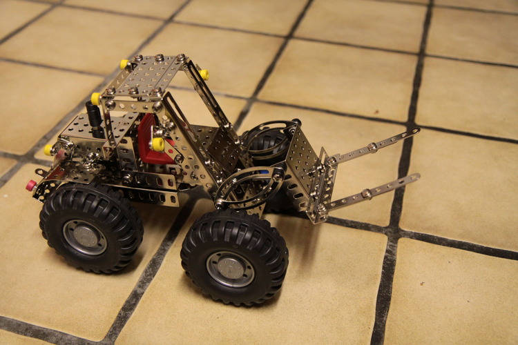 From the Eitech kit I recently bought, I've built the fist model. Quite fun, and looks good. It was not difficult to put together, however it took some time getting used to the different pieces. Also, there were some very small places one had to get to in order to put on the nuts. Finally, the instructions could have been a bit more elaborate at some points. Or rather, they could have included more steps. By doing too many things at once, the pictures sometimes became a bit confusing and unclear. The instructions contained 16 steps to build this car. If it had been a Lego model, it would probably have been three times that number, for the same number of parts.
