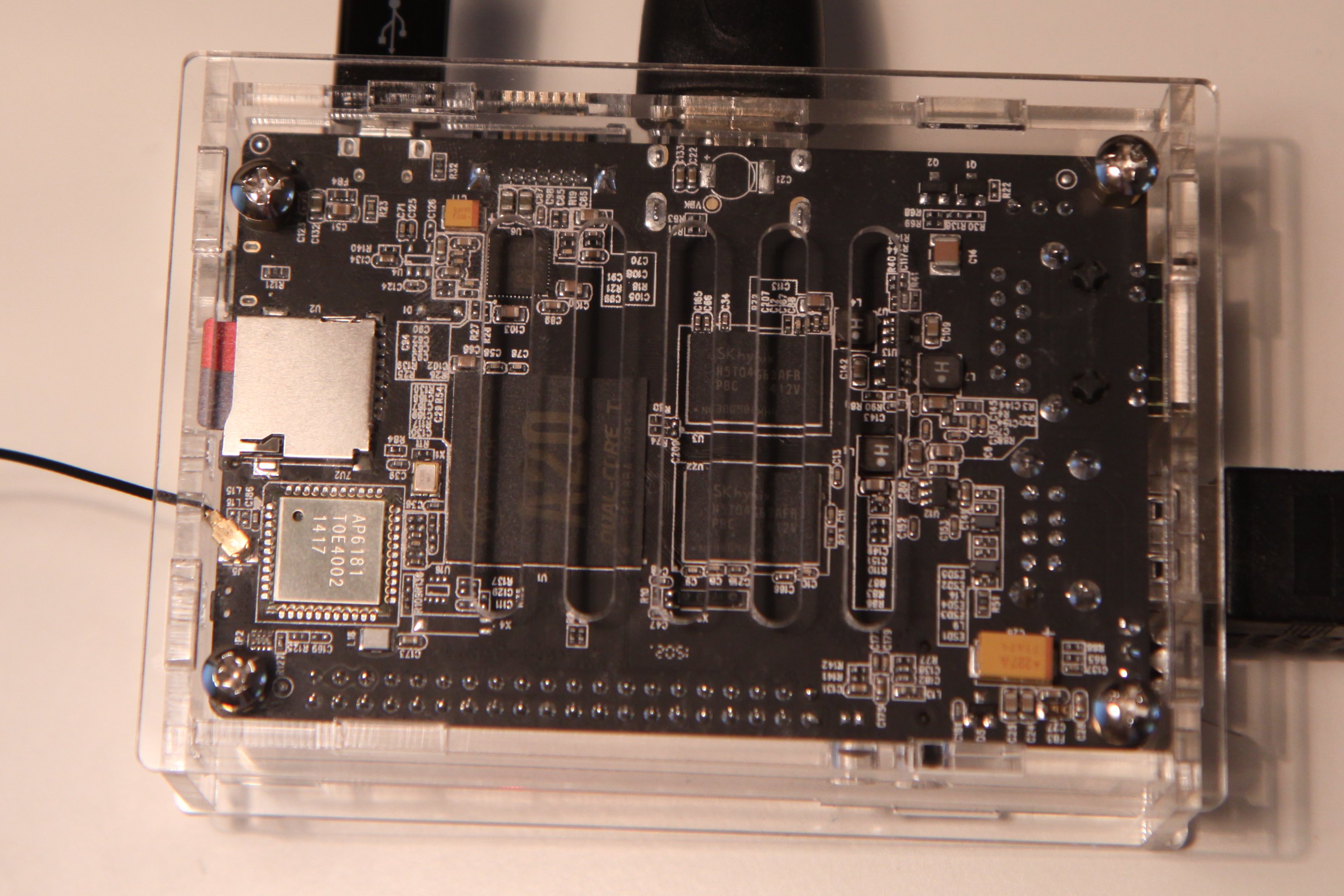 Compared to the original Raspberry Pi, it's actually a very usable computer for day-to-day use. However, the Pi 2 probably evens that out, with a similar CPU and RAM. Just like the Pi, it has a 40 pin header, with 28 GPIO pins. It also has a camera interface, but also a display interface connector.