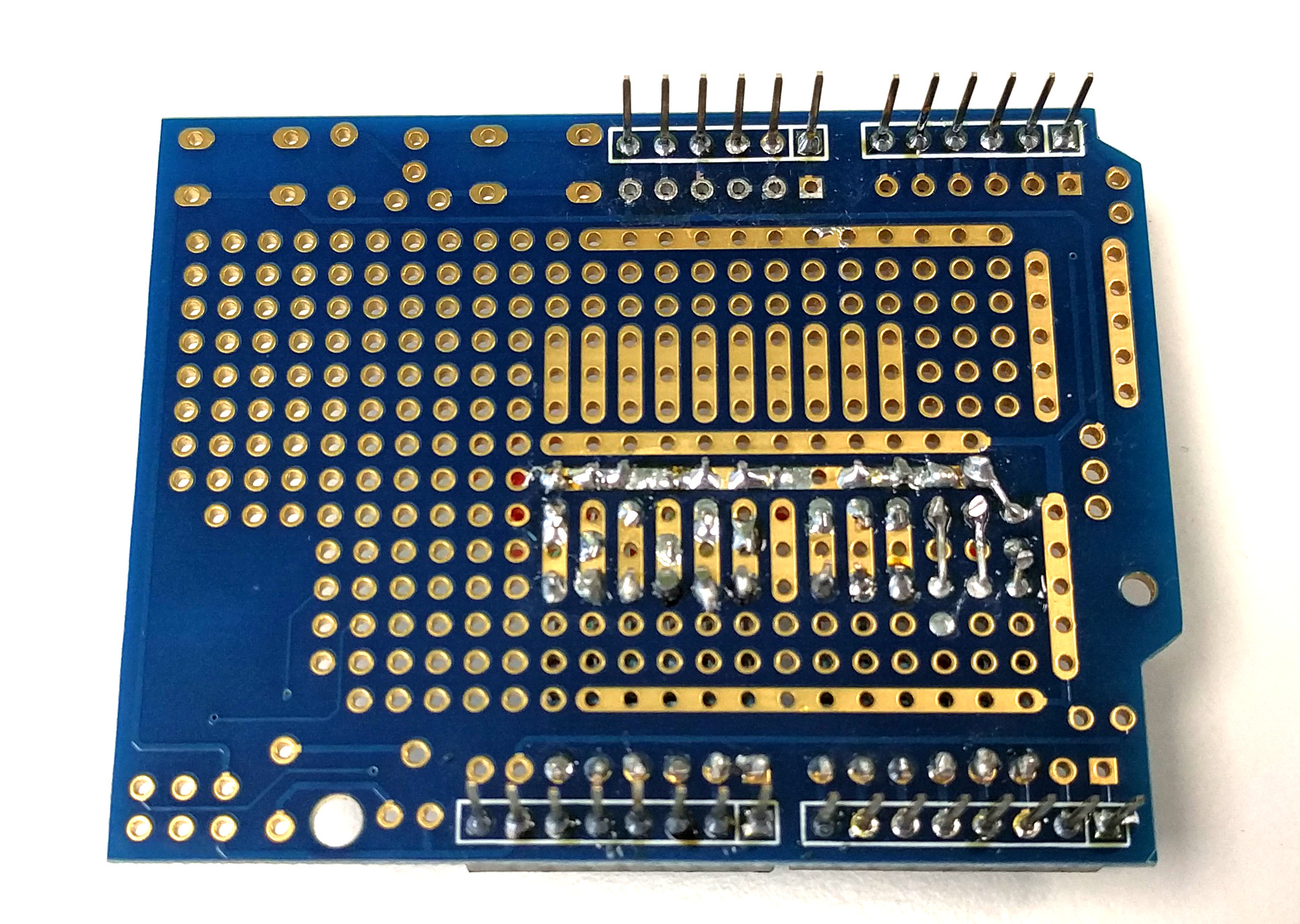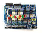 Now, I'm not an expert at soldering, nor product design, but this shield does the job, and already helped in programming my next project. Lesson learnt: Lay out the components all the way before heading off with the iron. I should have gone with the 3mm LEDs all the way. Or, maybe surface mount could have worked. Next time.